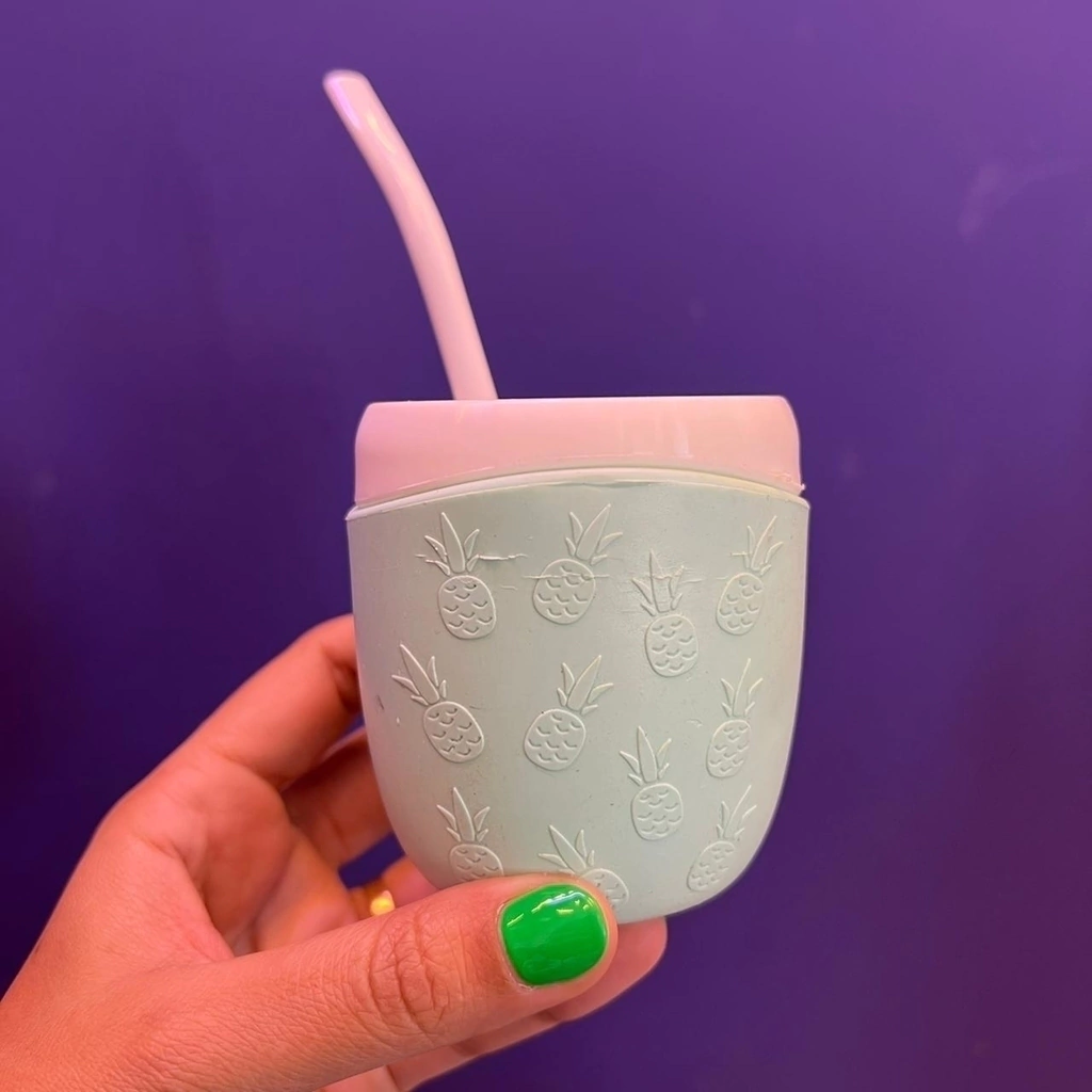 Mate plástico con funda de goma.Cuenta con sistema de fácil limpieza con sólo retirar la bombilla.Tiene una capacidad de 140 ml.Libre de BPA.No apto para microondasMedidas: 8 cm de alto x 7 cm de diámetro.Material: PlásticoCaracterísticas