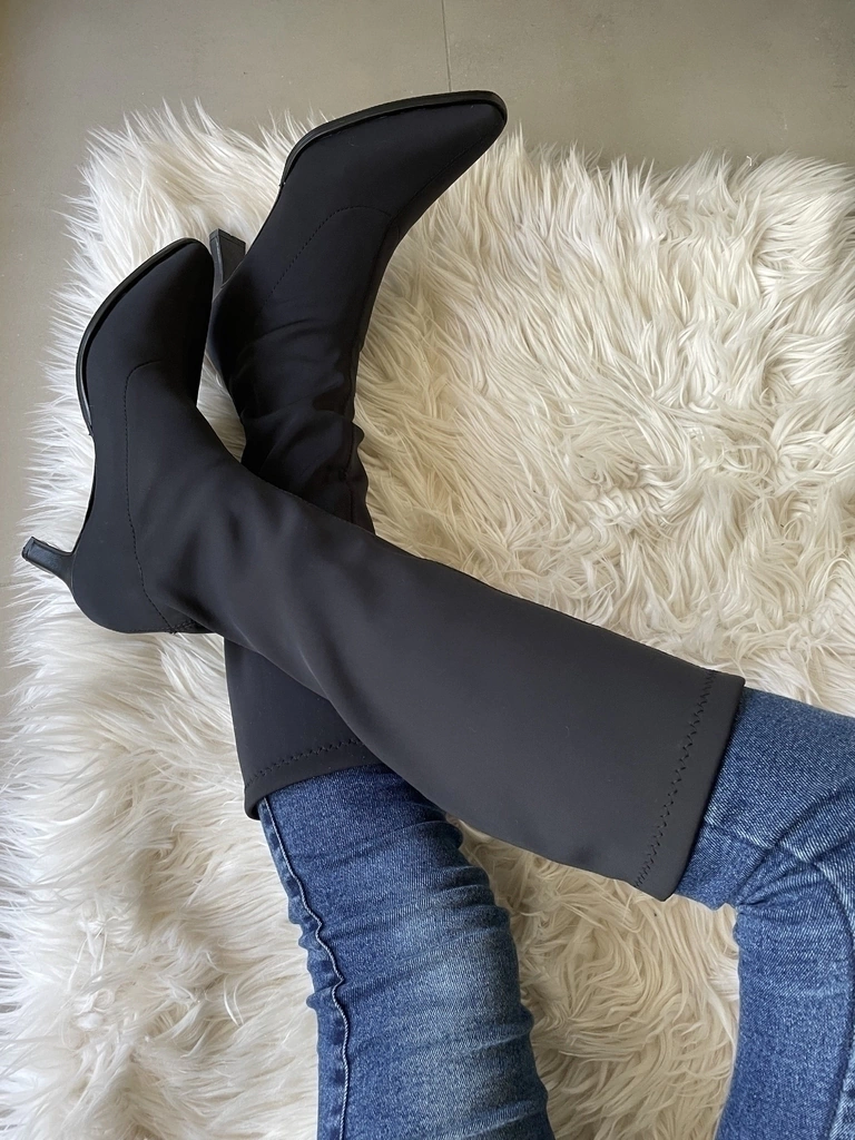 Botín caña alta de lycra italiana.Material: lycra italianaForro: cueroSuela: suela con suelín de gomaAltura taco: 5 cm* Seleccionar talle en las opciones
