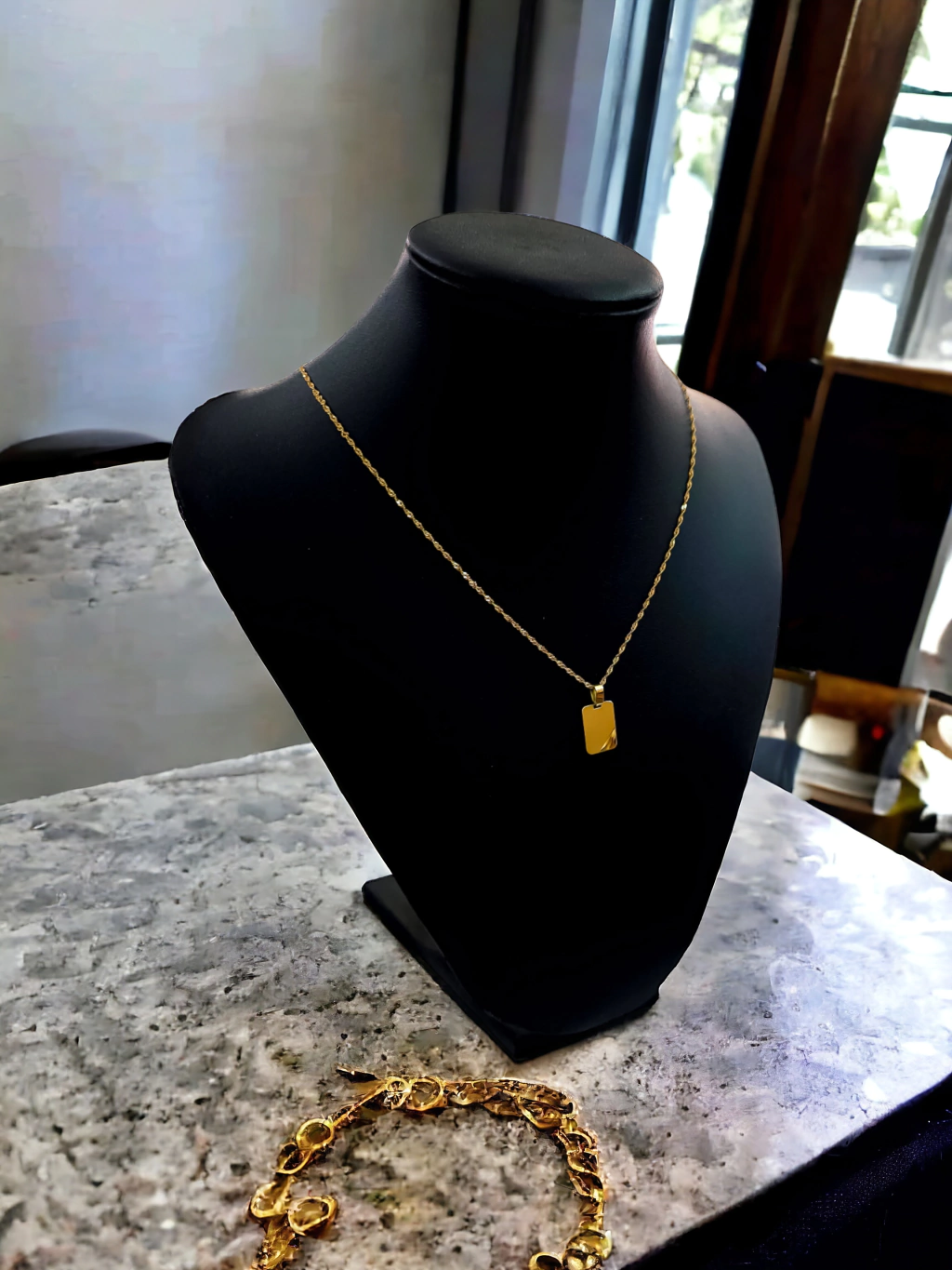 ¿Buscás una joya que combine elegancia y personalización? En Fasano Joyeros, te presentamos nuestra exclusiva medalla rectangular mediana en oro 18 quilates rosada, diseñada para que puedas grabar tu mensaje especial.