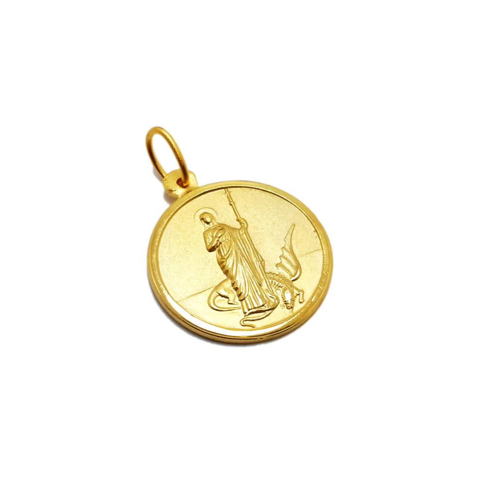 - Material: medalla de alpaca con recubrimiento plaqué oro 21k