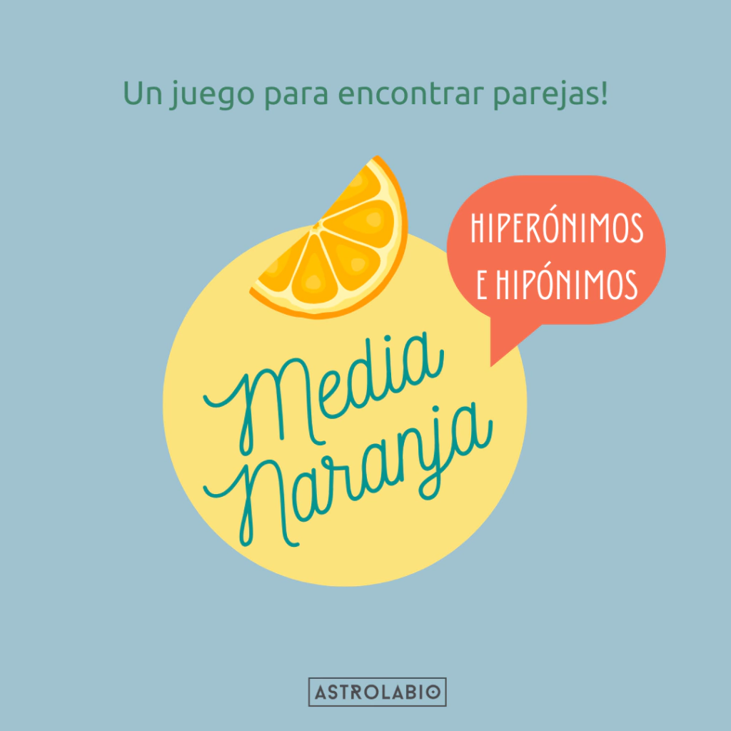 Material en PDF para imprimir y jugar! Dos juegos en uno.Primera manera de jugar: Media Naranja es un juego para encontrar parejas, en este caso, hiperónimos e hipónimos. Son 140 fichas diferentes (para garantizaar mucha rejugabilidad). Las fichas vienen en dos hojas de tamaño A3 (el doble de A4). Con imprimir una hoja de cada una alcanza para jugar con un curso completo varias partidas diferentes, pues las fichas van rotando a medida que l@s estudiantes se familiarizan con ellas.Segunda manera de jugar: dispuestos en ronda, se usan las cartas de hiperónimos para ir diciendo hipónimos oralmente y por turnos. Se le suman fichas de acción para modificar el sentido de la ronda o saltearse turnos. Va acumulando puntos el jugador/a que en su turno no pueda decir un ejemplo del hiperónimo que le tocó. Es muy divertido!Recomendado de10 años en adelante.Se sugiere imprimir en Papel ilustración 300gr. Cada hoja tiene frente y dorso (de distinto color para que sea más fácil ordenarlas boca abajo) pero pueden imprimirse simplemente los frentes.