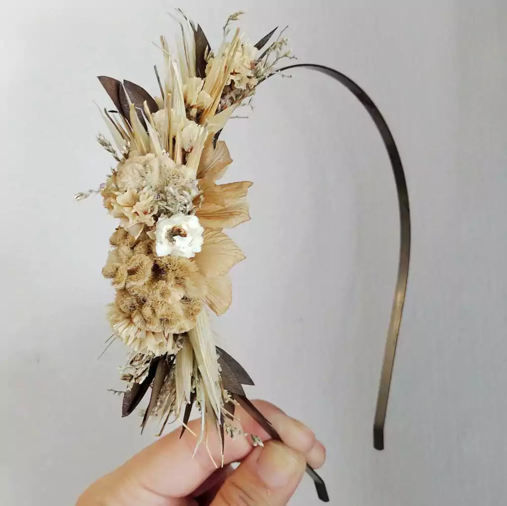 DescripciónMedia vincha de base metálica, con flores naturales preservadas y secas. Ideal para primeras comuniones, cortejos, bautismos, cumpleaños y cualquier ocasión especial.La vincha que se envía es la que se ve en las fotos.EnvioUna vez que hayas hecho la compra, el pedido se despachara a la brevedad. Cualquier duda contactate con nosotros mandando mensaje de whatsaapp al 11.5988.1141Retiro presencialSe coordina previamente. El Showroom se encuentra en Nuñez, CABA.