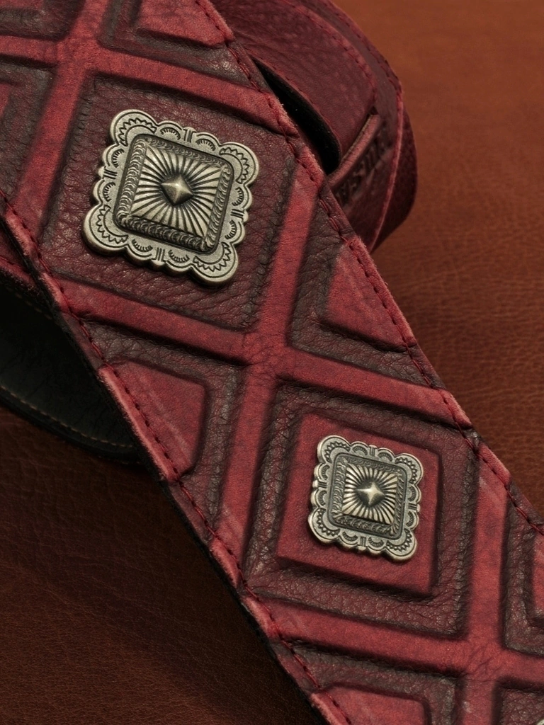 Confeccionada íntegramente tegramente en cuero natural en forma artesanal. Diseño en bajorrelieve y apliques. 7cm de ancho Revés forrado en cuero napado. Extensible entre 1 metro y 1, 40