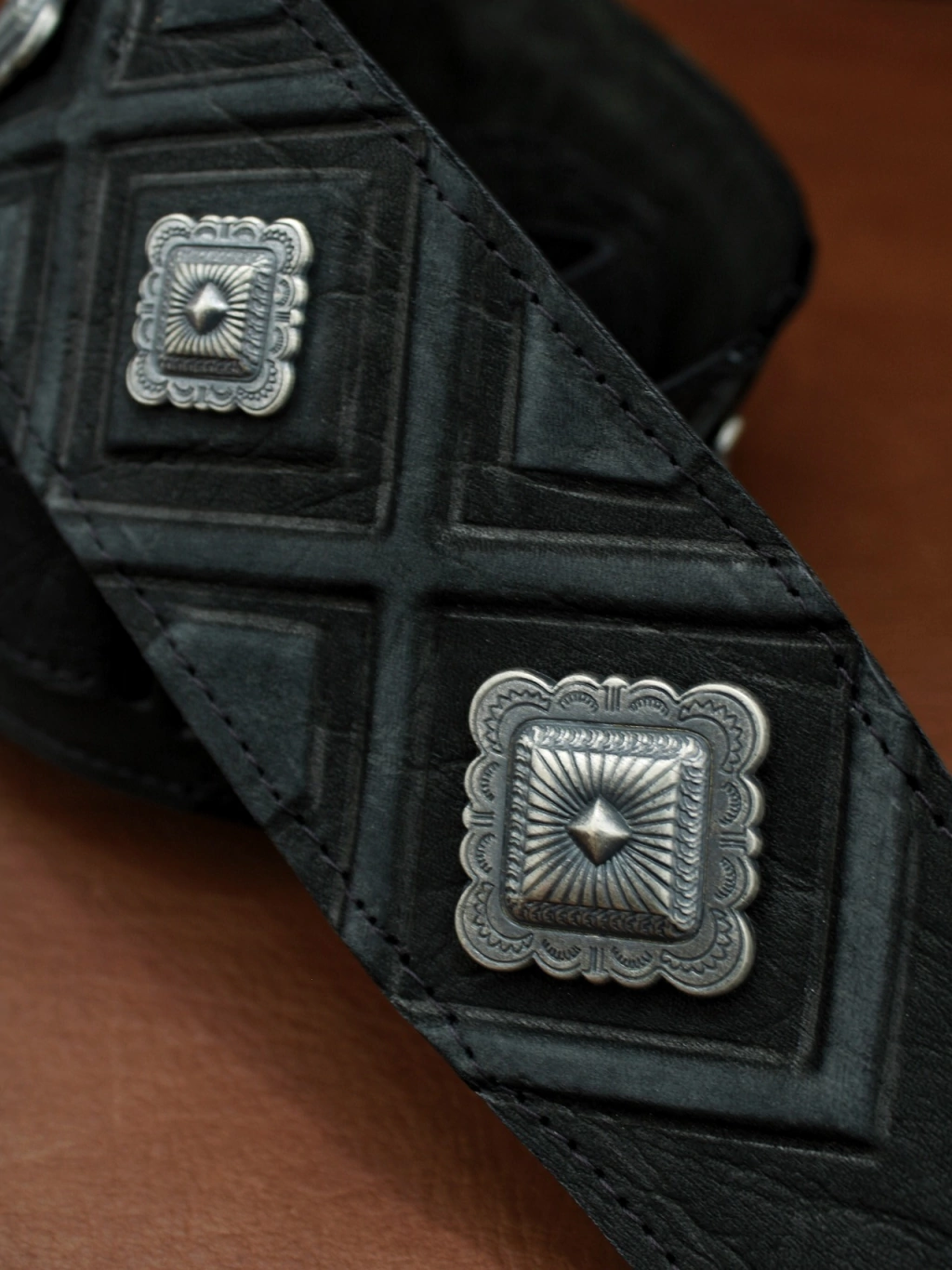 Confeccionada íntegramente tegramente en cuero natural en forma artesanal. Diseño en bajorrelieve y apliques. 7cm de ancho Revés forrado en cuero napado. Extensible entre 1 metro y 1, 40