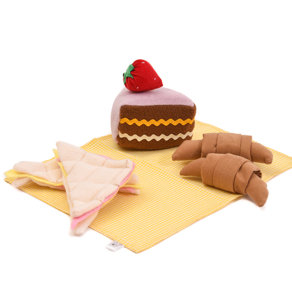 MERIENDAEste set es ideal para acompañar juegos de té, y/o armar un rincón de juego con una mesita baja. la frutilla se sale de la torta.Contiene:dos medialunas, dos tostados que NO son desarmables, una porción de torta de chocolate con frutilla bordada a mano, que se sale, y también trae mantelito (a veces puede variar su color, generalmente es amarillo)Se usan 5 tipos de telas diferentes, traen bordados y cintas.Viene en una mochilita de lienzo.Están cosidos a máquina, y sus terminaciones son a mano.Rellenos de vellón siliconado y gomaespuma de mediana densidad.Se pueden lavar en lavarropas, y se secan en un ratitoNo contienen pinturas, ni pegamentos de ningún tipo porque todo está cosido.TENTAMARKET - Todo para tu bebé, en un solo lugar.Somos distribuidores oficiales de Skip Hop, Sophie La Girafe, Mommy, Lakalumba, Bebesit y Jeico.Dentro de nuestros productos destacados podes encontrar:Bañeras, Vasito con sorbete, Cerealeras, Cubiertos, Mochilas y Luncheras, Sillas Booster para comer, Mochilas Maternales, Juguetes Montessori, Centro de actividades, Gimnasios didácticos y muchas cosas más.