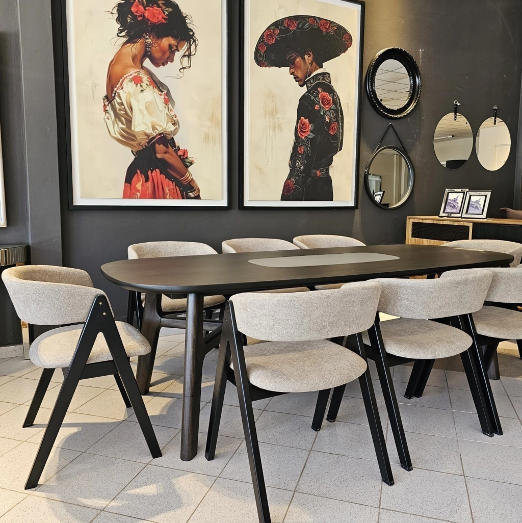 Mesa de comedor madera paraiso, con inserto varillas de aluminio.Medida 2.45 x 1.08
