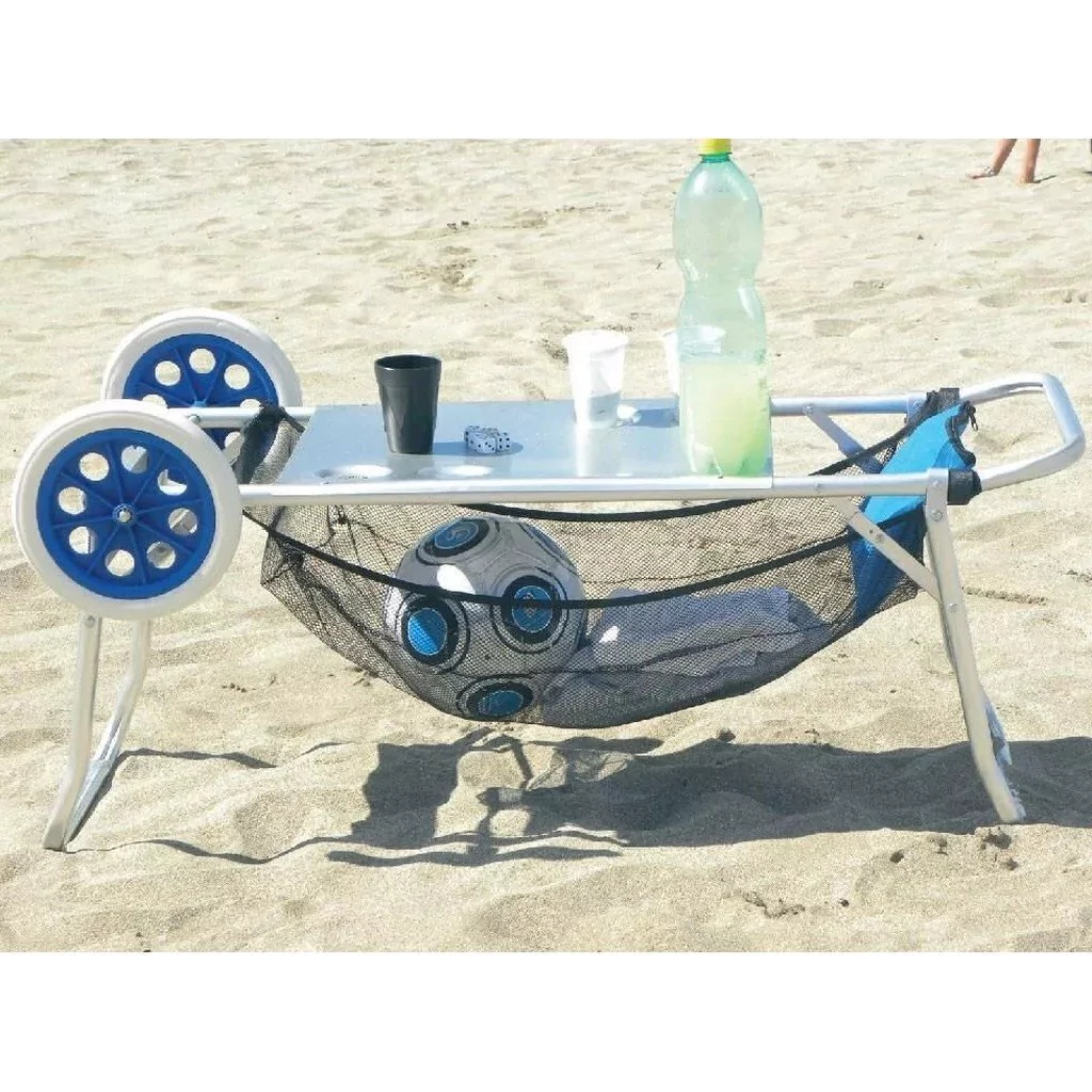 Este carrito es ideal para transportar hasta cuatro reposeras, sombrillas y todo aquello que lleves a la playa, al campamento o a cualquier otra actividad al aire libre y ¡además se convierte en mesa! Posee 4 cavidades apoyavasos y un bolsillo con cierre para objetos pequeños.
