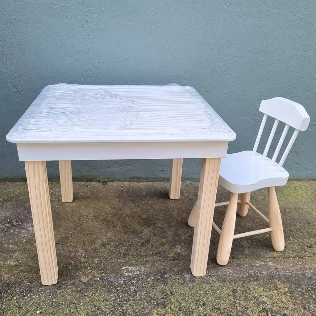 Juego de mesa cuadrada + 2 sillas cuadradas en color blanco, para armarles un lindo espacio para que dibujen, pinten y jueguen desarrollando la imaginación!Medidas:Mesa:50 cm de alto x 60 cm de ancho x 60 cm de profundidadSillitas:Asiento 25 cm de ancho30 cm de alto al asientoConsultá colores y diseños disponibles