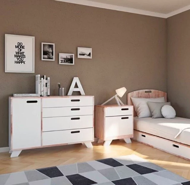 Mesa de luz de estilo nordico, una de las más simpaticas en este estilo.