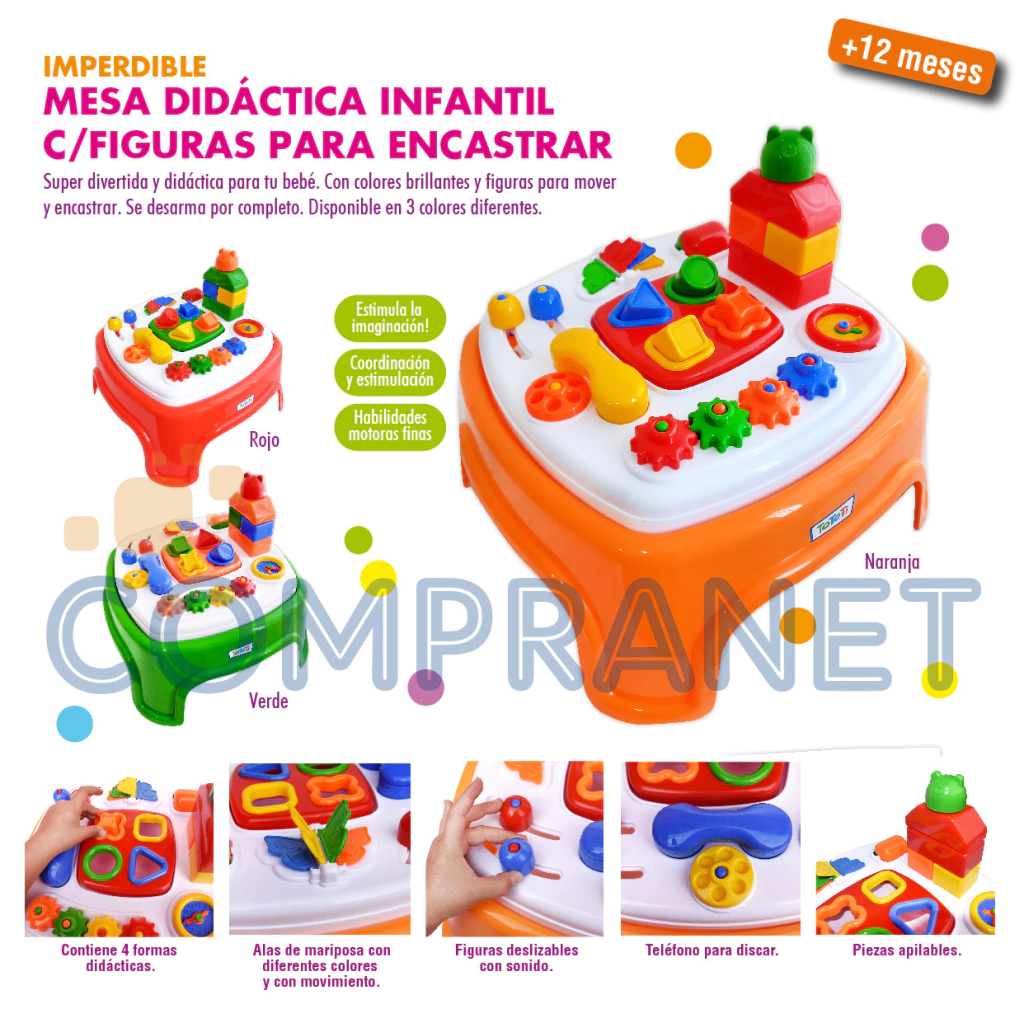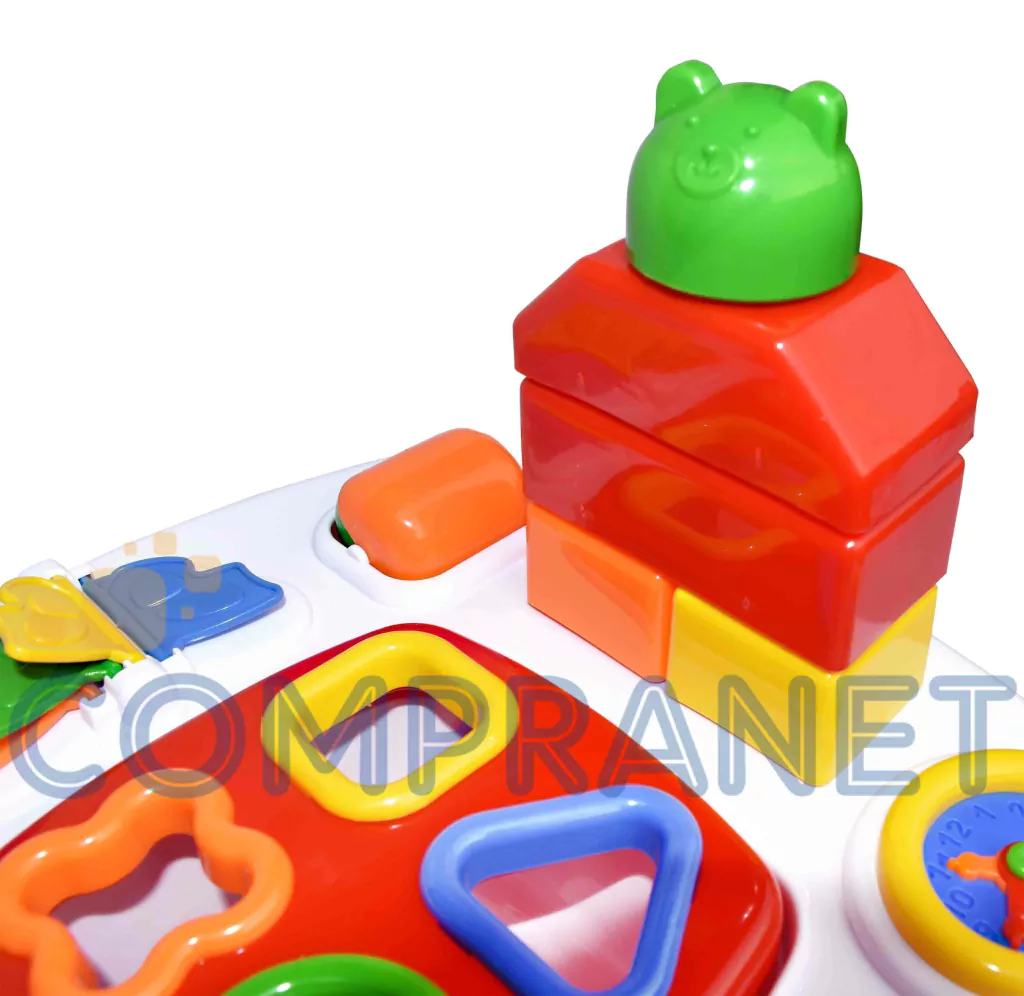 Mesa didáctica Encantada Calesita con bloques teléfono y mariposa.CARACTERISTICAS:- bloques de encastre- engranajes locos- mariposa multicolor- discado telefónico- rueda- figuras geométricas de encastre y mucho más.A partir de los 12 meses.Este cocodrilo ayuda a los niños a distinguir formas, colores y estimula la coordinación motora.Refuerza:•La coordinación entre los ojos y las manos•Las habilidades motoras finas (las manos y los dedos) •Curiosidad y descubrimiento•Entender la causa y el efecto•La integración visuoespacial.En Caja. No utiliza pilas.Medidas: 37 cm (largo) x 37 cm (ancho) x 21 cm (alto)