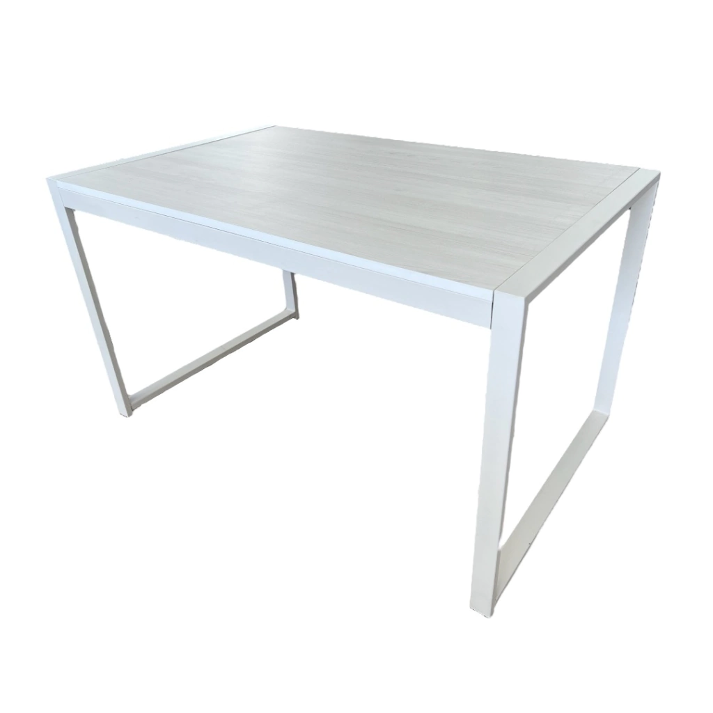 Mesa industrial de estructura desarmable. Con dos patas de estructura de caño rectangular blanca o negra. Tapa de melamina color marron o blanca. Medidas: 130cm de largo x 80cm de ancho x 76cm de altura.