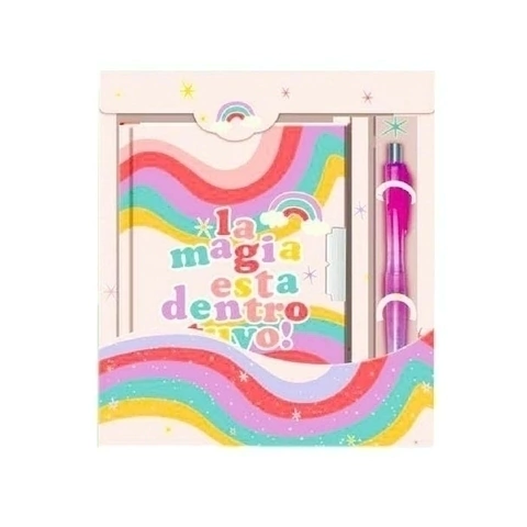 ¡Conocé el MI DIARIO INTIMO RAINBOW! 🌈✨ Este diario es el refugio perfecto para tus pensamientos y secretos. Con medidas de 13x17 cm y tapas duras, ¡es súper resistente y fácil de llevar! Además, tiene un candado y llaves de seguridad, así que tus ideas estarán protegidas. Incluye una lapicera, ideal para que anotes tus sueños o dibujes lo que más te inspire. No te quedes sin el tuyo y empezá a plasmar tus aventuras y emociones en sus páginas. ¡Dejá que tu creatividad brille con este diario tan colorido! 💖✍️