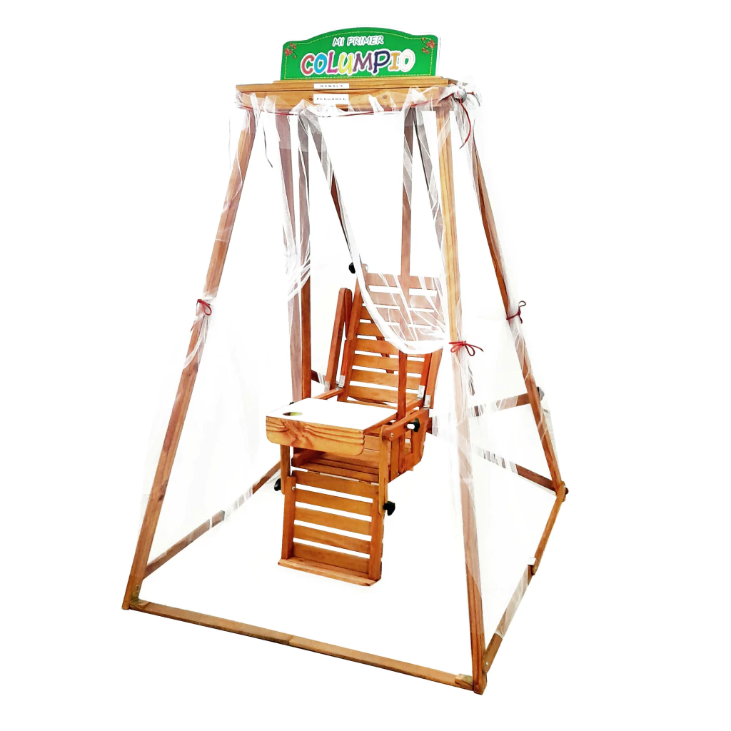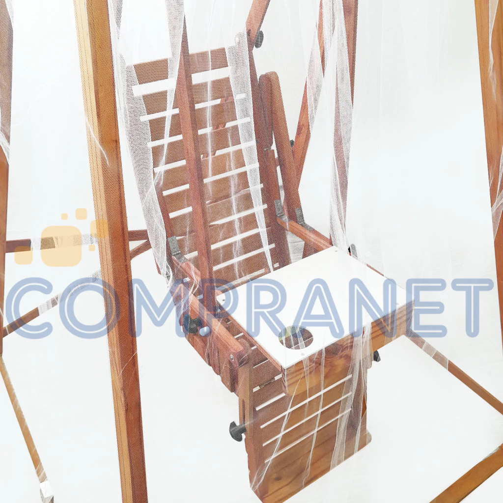 Hamaca Plegable de Madera “Mi Primer Columpio”, diversión asegurada para los más chicos. Ideal para tener en el parque o patio de tu casa. Incluye tul blanco, como mosquitero, para proteger a los mas chicos de mosquitos u otros insectos.Posee 3 posiciones:•Hamaca•Hamaca con mesa. Posee espacio para colocar el vaso, galletitas, etc•Cuna Mecedora con pequeña almohada para que el niño apoye de la cabeza (para transformarlo en Cuna mecedora se debe reclinar el respaldo y subir el apoya pies y quedará como una pequeña cama)De fácil armado. Posee instrucciones adjuntas, para armarlo.Ideal para niños de 8 meses en adelante. Hasta 1.10 m de altura. Resiste hasta 30kg de peso.Único Modelo.Presentación: Termocontraído.Material: Madera Guatambú,Medidas de la Hamaca Armada: 1,08 m de ancho x 1.1 m (prof.) x 1.60 m (alto)Medidas de la Hamaca Plegada: 38 cm (ancho) x 1.5 m (alto) x 23 cm (prof.)