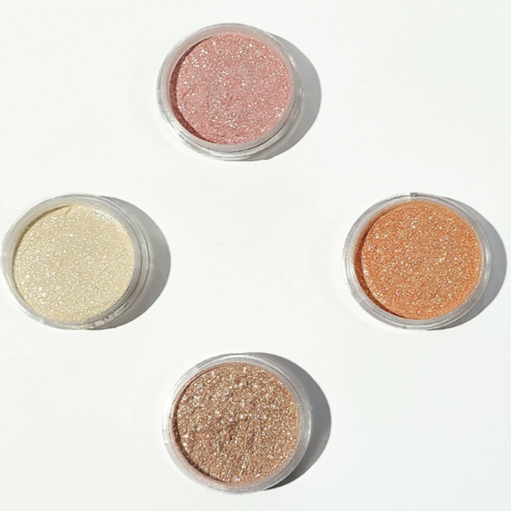 Perlas con color fusionadas con cristales de mica genuina micronizada. Textura noble que permite ser utilizada sola o mezclada con diferentes productos. Efecto de alto impacto visual. Pueden ser aplicadas en parpados, fusionarlas con el Diluyente y generar delineados cristal, o bien dar un toque de Luz sobre el labial.