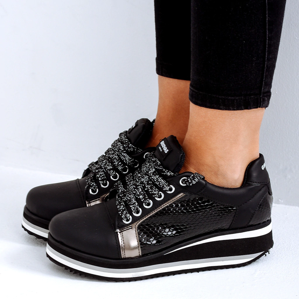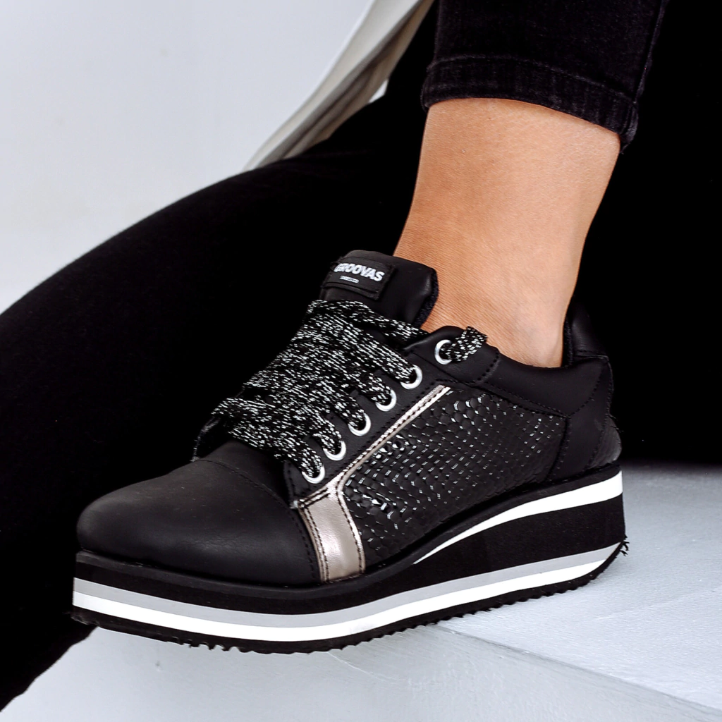 En Groovas Shoes Co. te esperamos para que te enamores vos también de nuestras zapatillas con plataforma. Tenemos dos alturas de zapatillas de mujer: zapatillas altas, de 8,5 cm de alto, y zapatillas de dama con plataforma bajas, de 5 cm de alto. Todos nuestros calzados están hechos con la gomaeva de mejor calidad. Vení a probar nuestros sneakers altos, las zapatillas más lindas! Moda argentina. Fábrica de zapatos nacional. Venta por mayor y menor de zapatos de mujer.