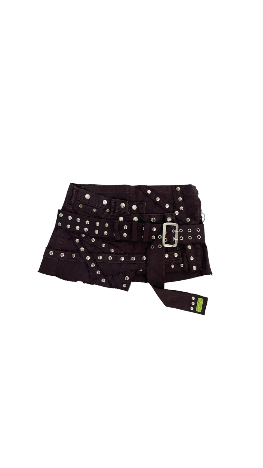 • técnica: reciclado• base: denim elastizado de algodón y poliéster• color: marrón oscuro• tachas: plateadas• cinto: desmontable• tiro: bajo• medidas: cadera 80cm a 95cm / largo delantero: 27cm / largo espalda: 29cmCONTORNO DE CADERA A DEFINIR SEGUN TU MEDIDA! (Mínimo 80cm - Máximo 95cm)Tener en cuenta que el cruce va a depender de la medida de tu cadera!#minisnumeradas #upcycling