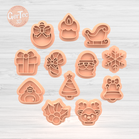 - [SKU 1477] -* MINI SELLOS NAVIDEÑOS (D3) SET X12 u. *- Cortantes para galletitas, fondant, pasta de azúcar, cualquier tipo de masas comestibles, porcelana fría o plastilina.- Set de 12 stamps navideños. (Fotos)- Medidas aproximadas: 3,5 cm.- Método de fabricación: Impresión 3D.- Material: Plástico PLA, NO TOXICO!- Color sujeto a disponibilidad actual de materia prima.ATENCIÓN:Se deben lavar a mano utilizando agua fría o tibia. No aptos para lavavajillas. No exponer a altas temperaturas. Secar bien antes de guardar.