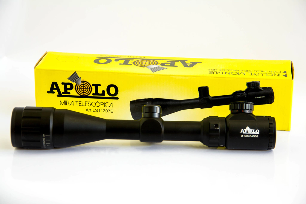 Mira telescópica 3-9 x 40Marca: Apolo.Modelo: 3-9X40 AOE R9Aumentos: -9Tamaño del retículo: 40 mm.Tipo de retículo: Range FinderLentes Hi-ResolutionZoom: SiMaterial: AluminioRegulacion manual de alza y derivaNitidez RegulableRegulacion 1/4 MOA o 1'Corrector de paralaje: SiAjuste de dioptría: SiIncluye montajes bajos con riel de 11 mmLargo: 31.5 cmDiametro del tubo 1"Peso: 277 grEl zoom varía entre 3 y 9 aumentos, además cuenta con un retículo Range Finder ultra nítido y regulación rápida de alza y deriva (torretas de caza) para una corrección rápida y precisa. Sus excelentes terminaciones te brindarán la máxima durabilidad y gran estabilidad en los disparos.