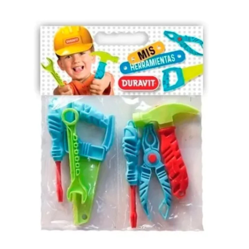 Descripción:Las imágenes son a modo ilustrativo, el color puede variar.Contiene: Un destornillador plano, pinza, martillo, serrucho, llave inglesa y destornillador phillips.Material: Plástico.Medida de las herramientas: entre 14cm y 20cm.Edad recomendada 3 años .