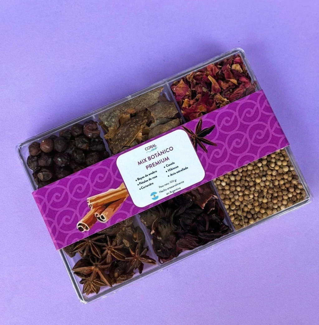 Mix premium de botánicos, contiene 6 especias: Hibiscus, coriandro, petalos de rosa, canela, bayas de enebro, Anis estrellado. Contiene 100 gramos, y lleva instrucciones de uso. Ideal para regalos! Prepara los mejores Gin Tonic.
