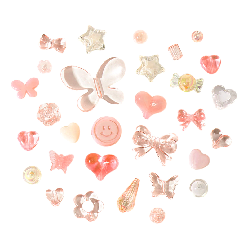 Modelos de tamaños varios, de 38mm a 5mm. Cantidad: 1 bolson de 500 gramos. Las unidades varían según el bolsón debido a la variedad de tamaño de los distintos modelos, pero rondan las 420 unidades. Material: Acrílico. Uso: Decoración, Manualidades, Pulseras, Collares, Llaveros, Holders de celular, etc.