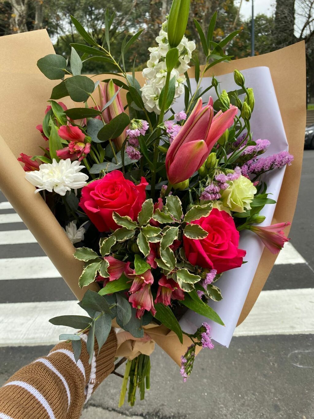 Ramo de flores surtidas de estación.Todos incluyen Liliums y Rosas. Podes pedirlo en la gama de color que mas te guste.ParaENVIAR A DOMICILIO, no olvidar al final de la compra en "comentarios" completar los siguientes datos:Dirección exacta (Calle, altura, timbre):Preferencia Horaria (Mañana o tarde; franja mínima de 2hs):Nombre y Contacto de quien recibe (MUY IMPORTANTE, por si no responde timbre):Breve Dedicatoria:Solicitamos por favor nos brinden los datos completos sin olvidar contacto por si el mismo se requiere al momento de la entrega. (Por ej: no responde timbre)**FECHA ESPECIAL - DÍA DE LA MADRE - Los ramos serán entregados durante todo el día. Por favor elegir la preferencia: mañana (8 a 13hs) o tarde. (13 a 17hs)