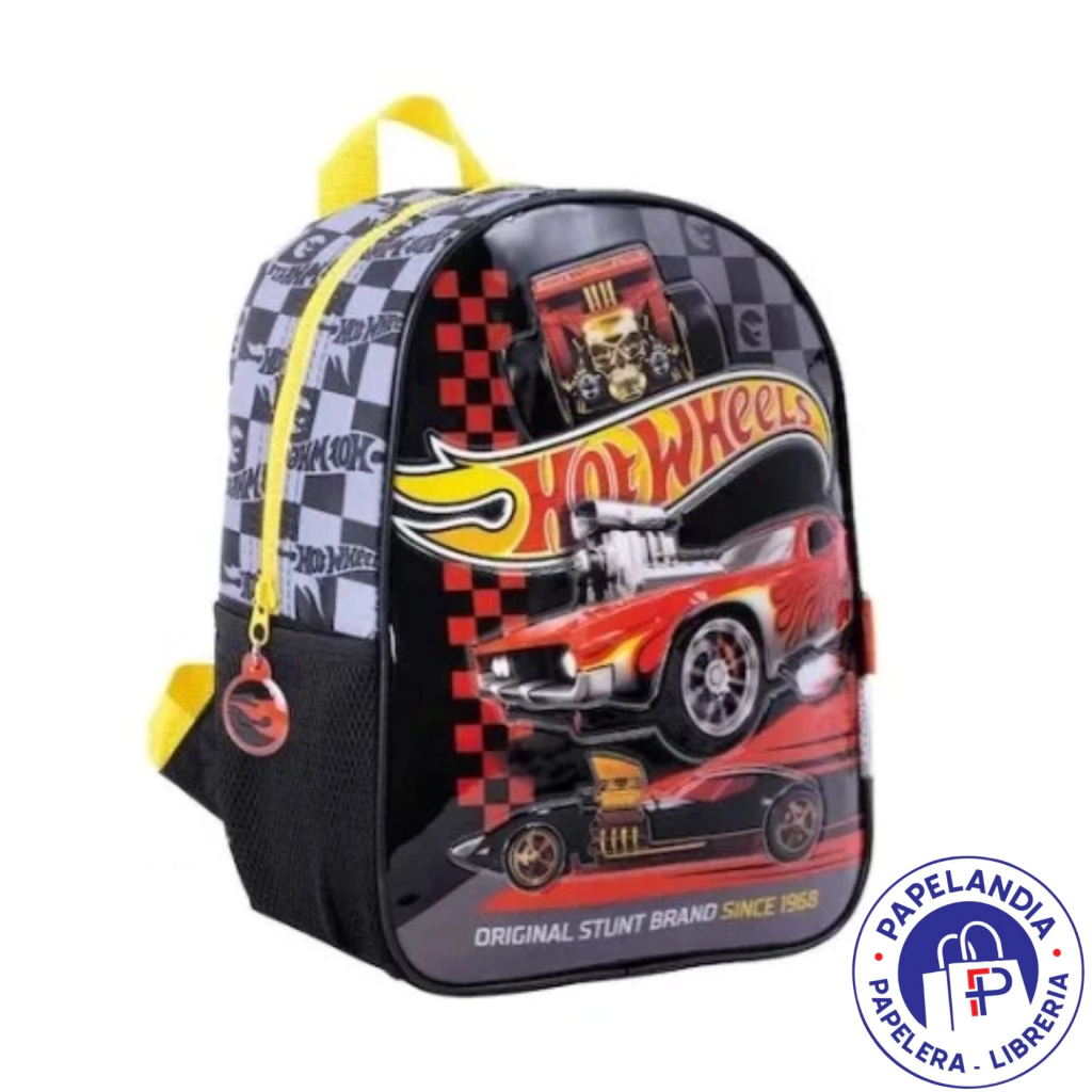 MOCHILA HOT WHEELS RED CARS ART 11621 ESPALDA 12" BASE GRIS Y NEGRO