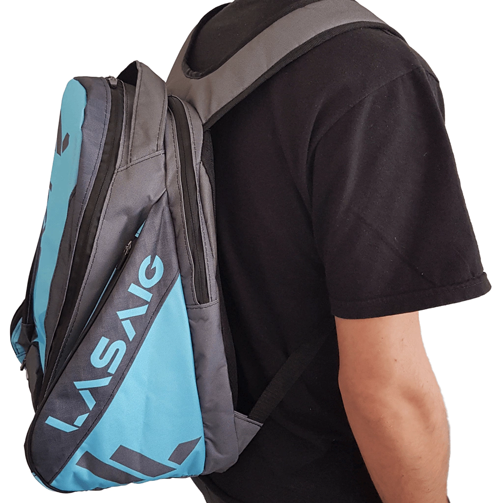 Pensada para que puedas llevar a la cancha todo lo que necesitás para jugar. Tiene dos bolsillos de gran tamaño, uno donde podés guardar toda tu ropa, toalla, pelotas, accesorios, etc., y otro para llevar dos paletas de pádel. Además, cuenta con dos bolsillos laterales, un bolsillo pequeño en el interior para poder guardar tus objetos personales y un compartimento impermeable con cremallera central para guardar tus zapatillas.