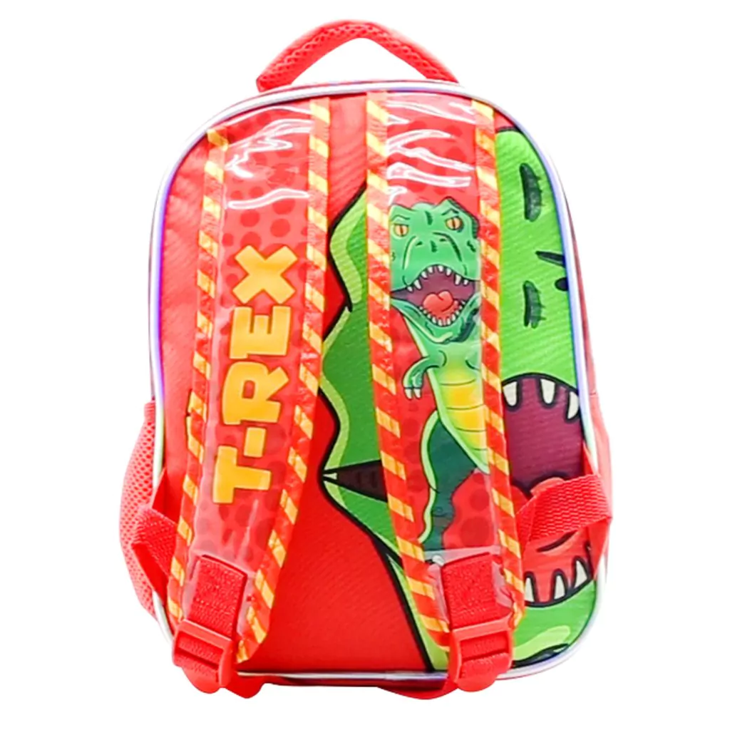 Mochila p/Jardín “Mundo Dinos”, de espalda, 12 pulgadas.Un Compartimento central con espacio amplio de guardado. Interior forrado en tela lisa.Doble Cierre con deslizador metálico decorativo. Posee 1 bolsillo lateral de red con ajuste elástico superior, ideal para la botella.Sujetador manual en la parte superior. Espalda acolchada y Tiras traseras regulables y extensibles con hebillas plásticas.Frente de PVC estampado con relieve y botón que al presionarlo emite rugidos de dinosaurios.Posee un espacio de identificación para colocar los datos del niño. (En el lateral)Ideal para el jardín.Material: 100% poliéster.Único modelo.Medidas: 22 cm (ancho) x 31 cm (alto) x 11 (prof.).