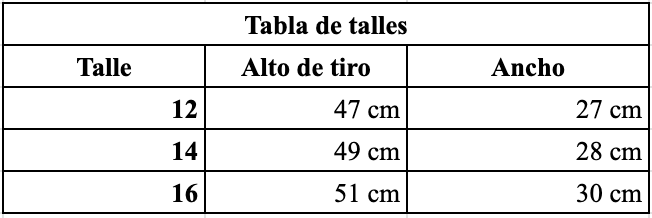 Recomendamos tomar como referencia un traje de baño que le quede bien y guiarse por las medidas de la tabla de talle.