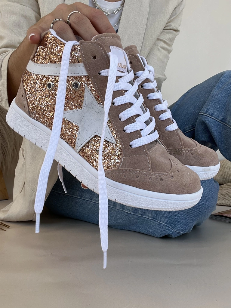 KALMA ESSENTIALS❤️Zapatillas de brillo rosa y ecogamuza, con suela full expanso. ¡Diseño súper femenino con toda la onda! 😍Altura talón:2,8 cm (base media)Plataforma (adelante):2 cmHorma:Normal.Diseño:Detalles en ecocuero blanco.CUIDADOS:No rozar ni raspar para no dañar su material. Limpiar manualmente
