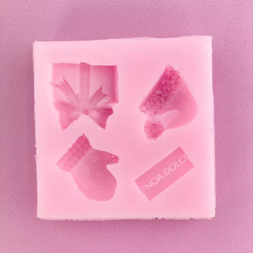 MOLDE DE SILICONA NAVIDAD GUANTES SOMBRERO Y REGALO X1MOLDE DE SILICONA PARA FONDANTMEDIDAS CADA MIÑIATURA 2.5 X 2.5CM