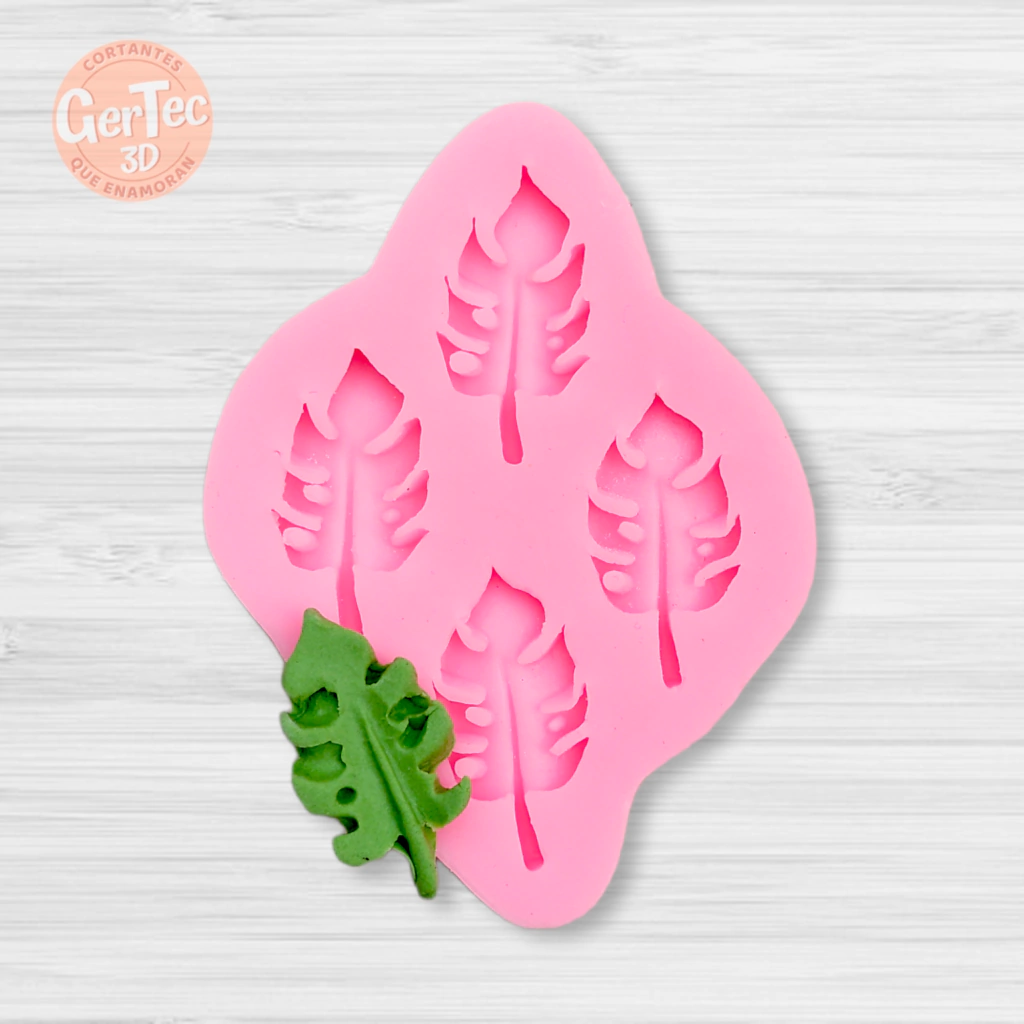- [SKU MS180] -- MOLDE SILICONA CON 4 HOJAS TROPICALES- Medida aprox. del molde: 7,5 X 6 cm.- Medida aprox. de piezas: 3 cm.