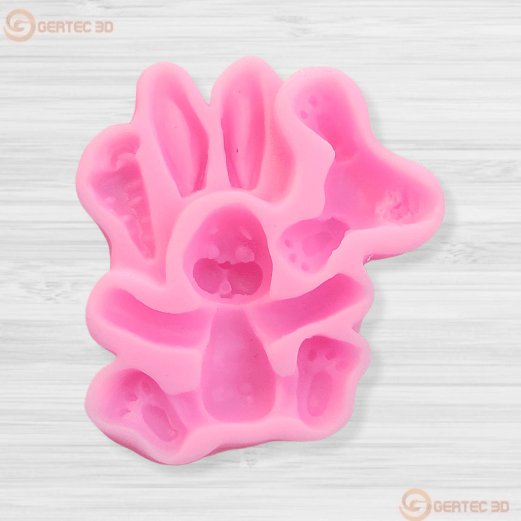 - [SKU MS033] -- Molde de Silicona con forma de CONEJO PARA ARMAR + ZANAHORIA- Medidas aproximadas de cada pieza: 7 x 6,5 cm.