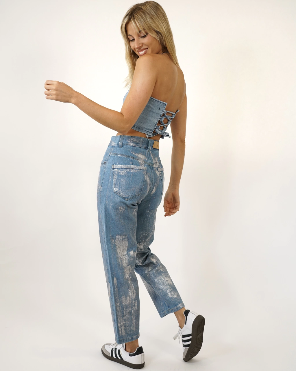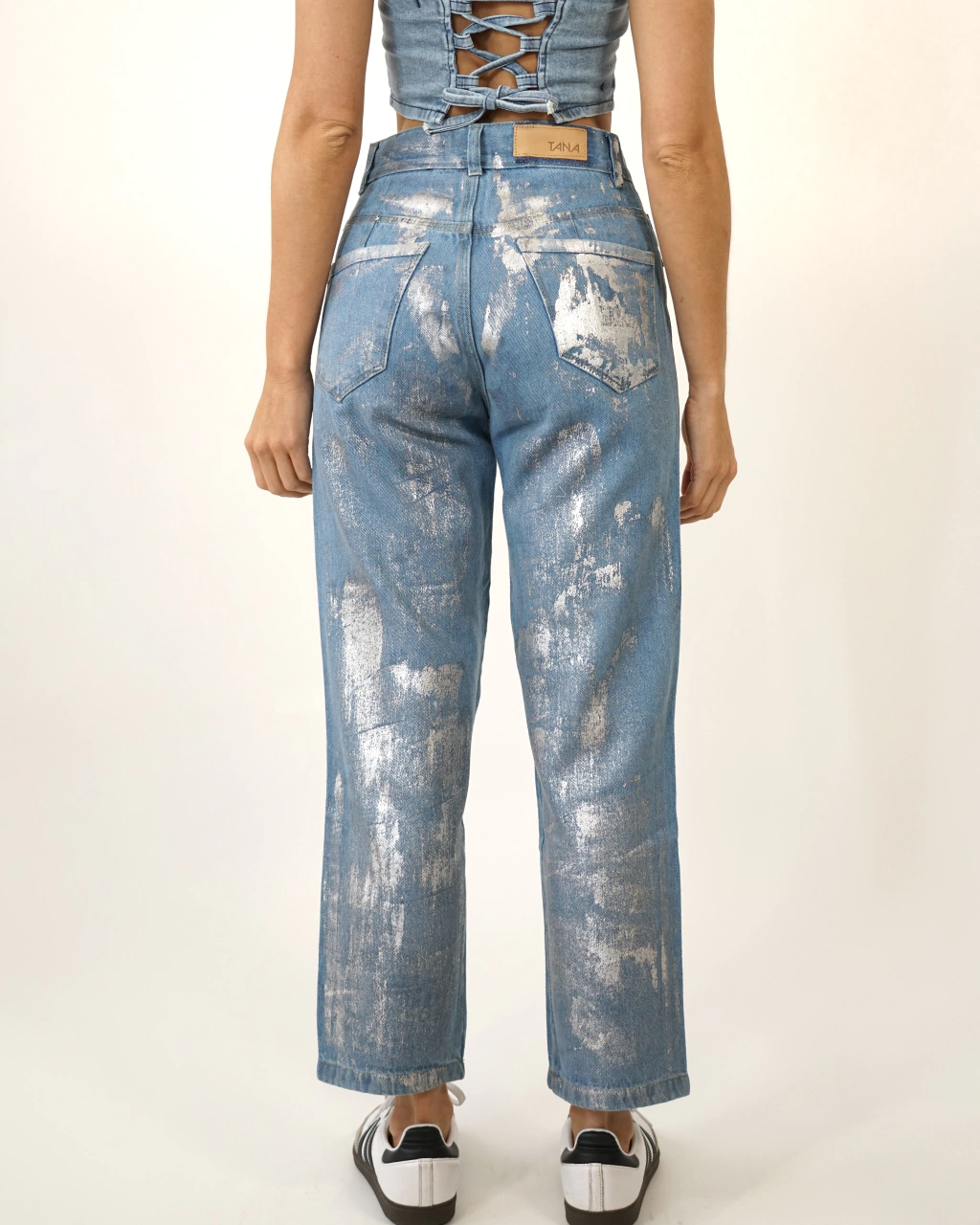 Mom ASHLEYAshley es nuestro pantalón mom rígido clásico, confeccionado con tela denim premium de color celeste y terminación simil metalizado.Se caracteriza por tener un calce de corte holgado y pierna recta que se afina hacia la botamanga (el largo llega hasta el tobillo).Su diseño clásico y fina confección hacen que, además de ser combinable con cualquier prenda, sea ideal para usar en cualquier ocasión.Características de la tela:Composición: 100% algodónPeso: 356 gramos/m2Producida conprácticas sustentables, priorizando el cuidado del medio ambiente.MEDIDAS DEL PANTALÓN POR TALLE EN LA ÚLTIMA FOTO DEL PRODUCTOIMPORTANTE: Cada marca tiene su propia guía de talles, en nuestro caso la numeración comienza en 36 pero esto no quiere decir que equivale al 36 de otra marca con la que te compares. Un TANA 36 puede equivaler a un 28 o cualquier otro número de otra marca, por eso, no te dejes llevar por el número de talle sino que es necesario medirte y definir el talle según la última foto de producto. ¡A continuación te explicamos como medirte!La guía de talles hace referencia a lasmedidas del pantalón, no a las de la persona. Medí una prenda similar que te guste y comparala con nuestra guía de talles. La prenda debe estar apoyada sobre una superficie plana y estirada. No la midas puesta. Necesitás medir la cintura y la cadera de la prendaen un solo sentido, tal como indica el dibujo (la cadera se mide en la parte más ancha de la prenda).Ejemplo: Si medís el pantalón que vas a usar de modelo y da 35cm en la cintura y 50cm en la cadera, deberías elegir el talle 42.¡Ante cualquier duda contactanos por Whatsapp para que podemos ayudarte!
