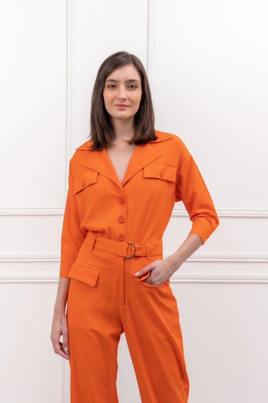 Monoprenda manga 3/4 confeccionada en Twill. Posee cuello camisero, cartera a la vista con botones de pasta al tono personalizados. Es una pieza de silueta recta, donde la cintura cuenta con presillas y cinturón desmontable con hebilla metalica que nos permite brindarle el entalle que nos haga sentir más cómodas.Composición:100% poliesterCuidados:LAVAR A MANO / NO DEJAR EN REMOJO / NO RETORCER / PLANCHAR CON TEMPERATURA BAJASi tenes alguna duda o consulta no dudes en escribirnos por whatsapp al  +5491128950069
