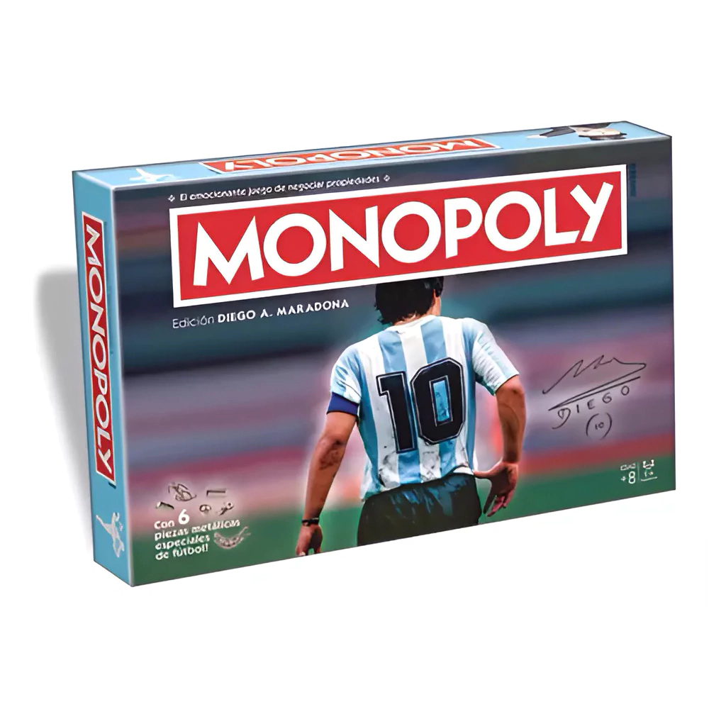 Monopoly Diego Maradona¡Experimenta la emoción de la historia con Monopoly "El Diego"!Este juego te lleva en un viaje emocionante a través de la vida y carrera del legendario futbolista Diego Maradona. Conviértete en un exitoso manager mientras recorres las instalaciones y rememoras las grandes victorias y jugadas que nos hicieron vibrar de alegría.Invierte en entradas y accesos VIP, recibe alquileres y gasta el dinero en merchandising para avanzar en el juego. Mantente astuto y alerta, ya que solo hay lugar para uno en el primer puesto.¡Negociá tu camino con éxito y podrás ser el ganador mientras llevas a tu equipo a la gloria futbolística!Sumérgete en la pasión del fútbol y compite por la victoria en Monopoly "El Diego".¡No te lo pierdas!Contenido:1 Tablero2 Dados16 Cartas local16 Cartas visitante28 Cartas titulos de propiedad6 Piezas metalicas especiales de futbol32 Casas12 HotelesBilletes de diferentes coloresIntruccionesEdad recomendada: +8 años___________________________________Garantía:90 días contra defectos de fábrica, 72 hs. de prueba para cambio directo.___________________________________