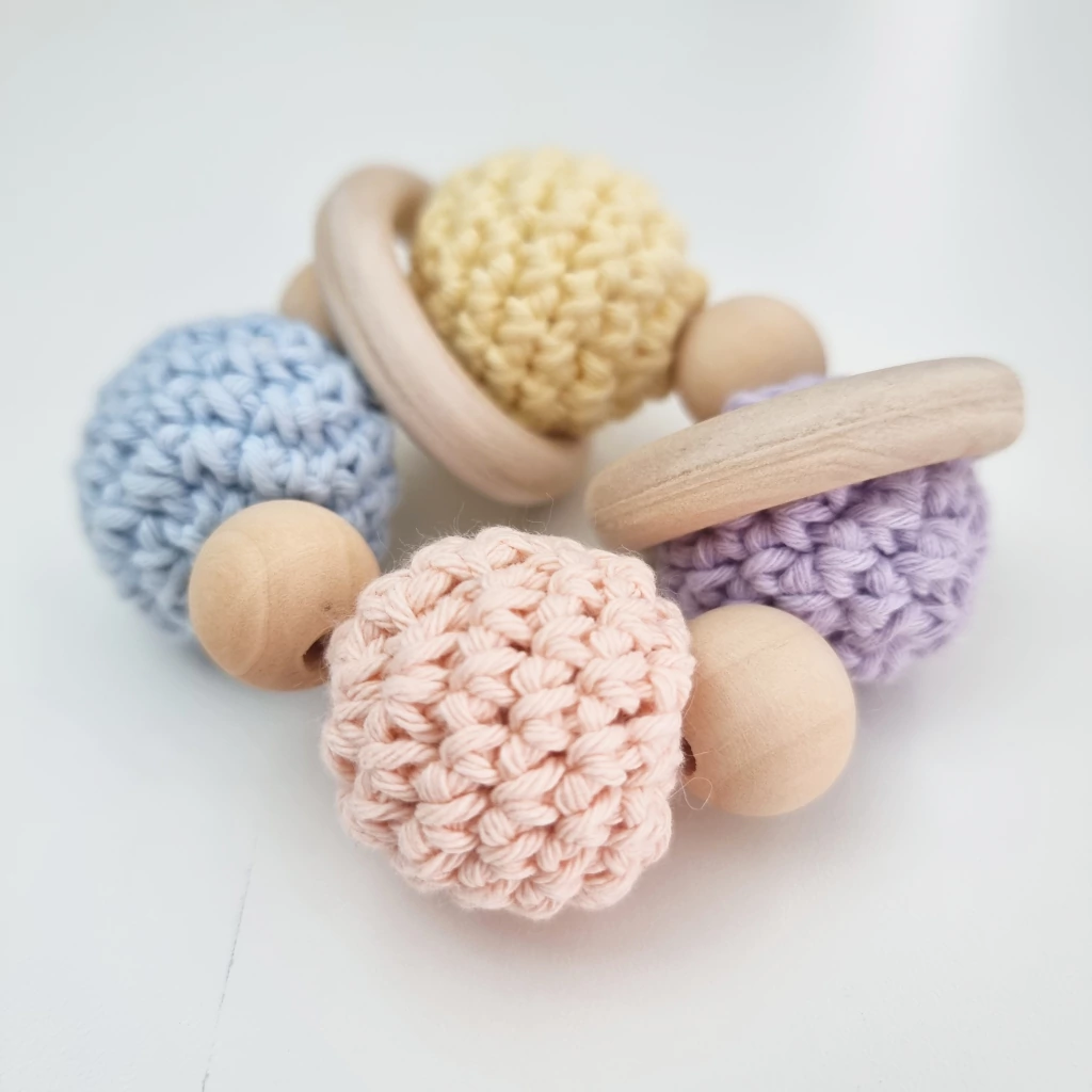 Divertido Mordillo de madera para bebés. Estimula los sentidos (vista, tacto, oído y olfato), entretiene al bebé en su juego y ayuda en el proceso de dentición. Ideal para tener en casa y en el bolso maternal.