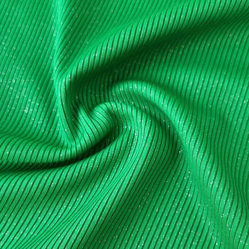 Este morley lurex es un tejido de punto de baston fino y compacto. Tiene una terminación de brillos (lurex) en su cara derecha. Es perfecto para la confección de musculosas, remeras, poleras y tops. También para bodys, y vestidos al cuerpo.