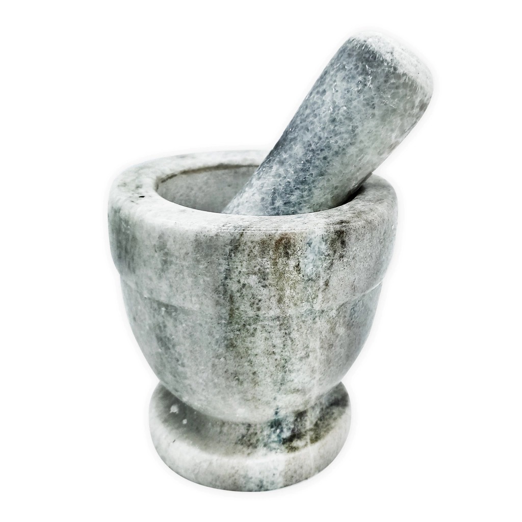 Mortero de mármol para moler especias o hierbas, con machacador.