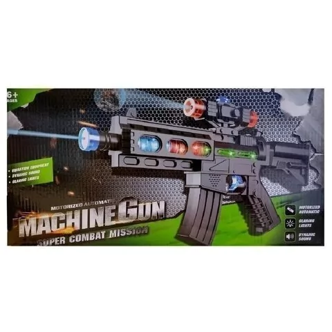 Ametralladora con luz y sonidos.Requiere 3 pilas AA (No incluídas)Edad Recomendada: +3 años