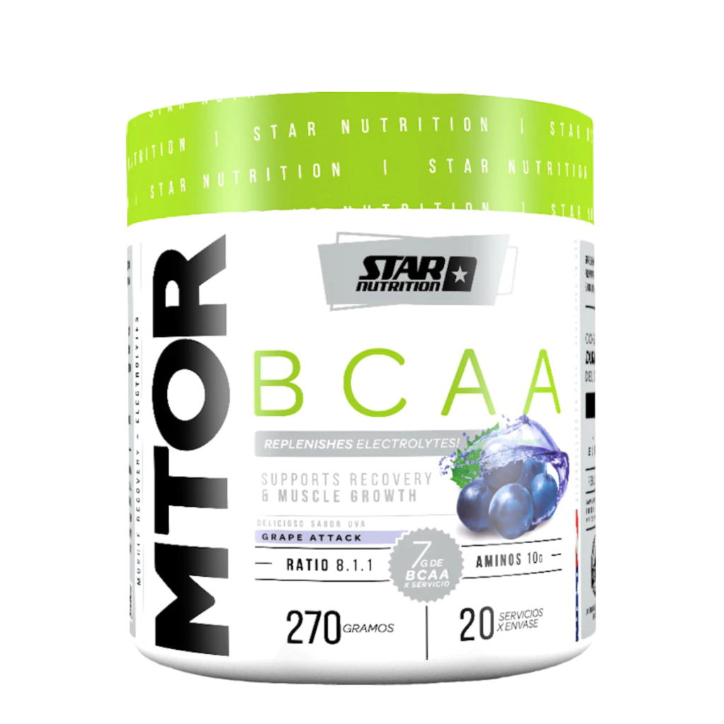 MTOR BCAASuplemento dietario en polvo dietético para preparar bebida a base de aminoácidos.270G | 20 SERV. | REPLENISHES ELECTROLYTESSUPPORTS RECOVERY AND MUSCLE GROWTHModo de usoComo suplemento dietario mezclar 1 porción (13,5g /1 scoop) en 500cm3 de agua fría (ajustar la porción a su preferencia).En los días de entrenamiento consumir 1 porción durante el entrenamiento y 1 porción luego del mismo.En los días en los que no hay entrenamiento consumir 1 porción al día.Para mejores resultados consumir diariamente.IngredientesL-Leucina, L-Glutamina, L-Citrulina Malato, Ácido Cítrico, L-Valina, L-Isoleucina, Sodio Citrato, ARO: sabor *según corresponda, Cloruro de Potasio, Ácido Málico, Cloruro de Sodio, EDU: Sucralosa (27mg/100cm3), EDU: Potasio Acesulfamo (10mg/100cm3), Colorante, Vitamina B6 (Piridoxina).AdvertenciasSuplementa dietas insuficientes, consulte a su médico y/o farmacéutico. No consumir en caso de embarazo, lactancia, ni en niños. Menores de 18 años consumir bajo supervisión de un adulto o profesional. Mantener en lugar fresco y seco, fuera del alcance de los niños. No exponer a temperaturas mayores a 25°C.