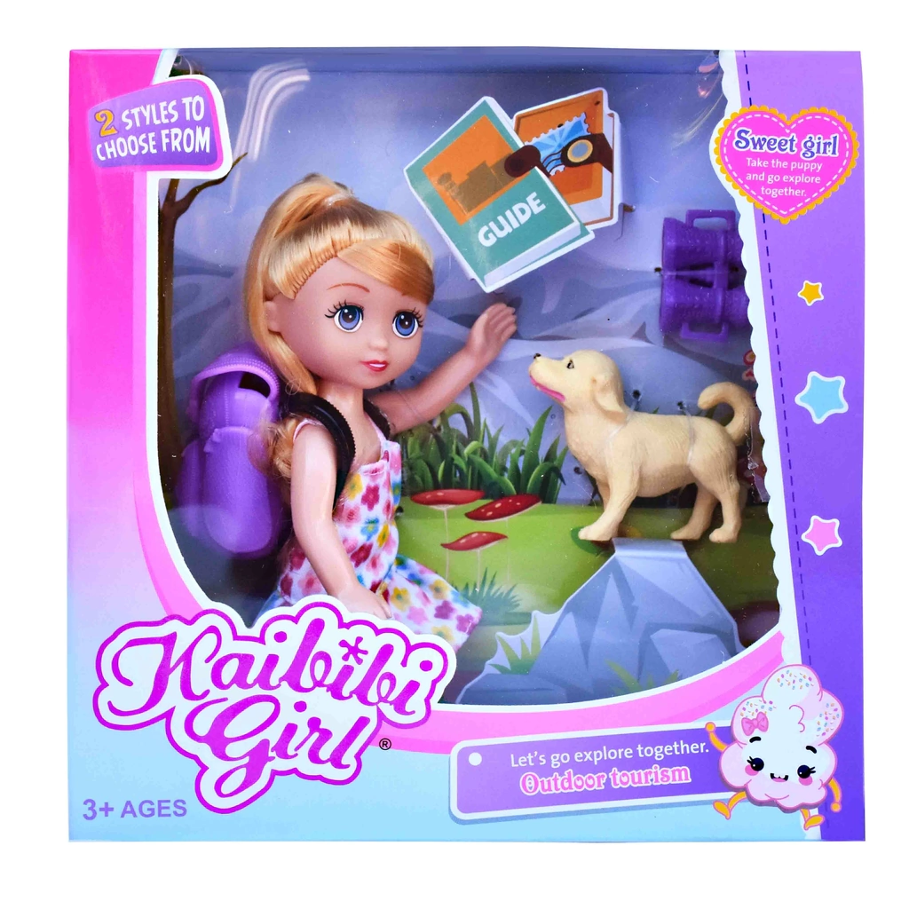 Hermosa muñeca "Kabibi Girl" exploradora con mascota y accesorios (mochila y largavistas).Para niños mayores de 3 años. Jugar con muñecas es un importante juego simbólico que se desarrolla durante la infancia, siendo una herramienta de aprendizaje y de acercamiento al mundo adulto, permitiendo desarrollar un juego de roles que se aplica al mundo real.En caja. No utiliza pilas.Medidas: 19 cm (alto) x 19 cm (largo)