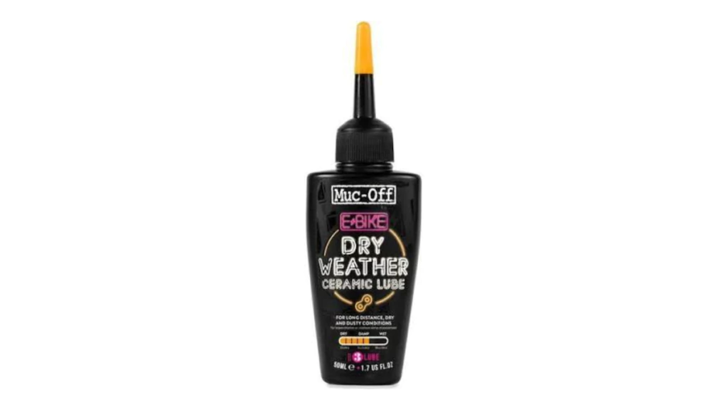 DescripciónEllubricante MUC-OFF tiempo Secoes un producto exclusivo capaz de limpiar y proteger toda labicicleta eléctrica.Diseñado específicamente para las cargas de alta torsión aplicadas a una cadena eBike.Crea un revestimiento cerámico para una durabilidad increíble y un rendimiento a larga distanciaContiene compuestos de nitruro de boroLos compuestos cerámicos proporcionan una fricción ultra baja para una excelente eficienciaImpermeable – sobresale en condiciones húmedasFácilmente biodegradableIdeal para carretera y off-road.Colorante trazador UV integral: ayuda a la aplicación precisa para garantizar una protección total.Instrucciones de uso:Desengrasar totalmente y secar la cadena.Agite la botella vigorosamente y aplique lubricante asegurándose de que se tratan todas las partes de la cadena.Lo ideal es aplicar 3-4 horas antes de su viaje.Limpie el exceso con un paño.Evite el contacto con los frenos.Guardar en un lugar fresco y seco.