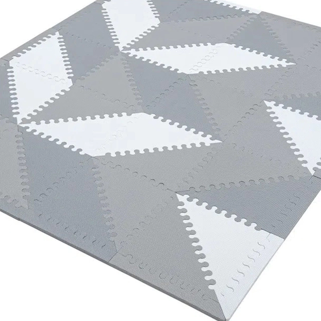 Multi-Eva Piso Nórdico Triangular - Medida: 32 Cm x 32Cm Bordes 12mm - Anti golpes. - Fácil de armar. - Lavable. - Anti deslizable. - No tóxico. - Contiene: 40 PIEZAS + 32 BORDES