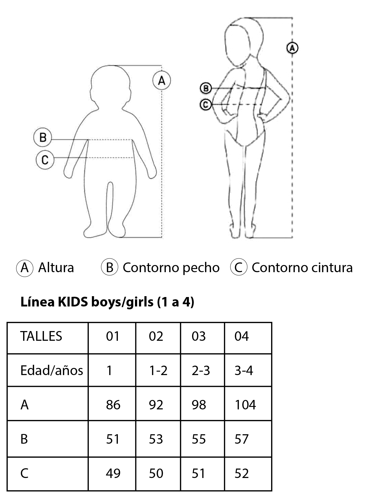 Este modelo está disponible en 4 talles que abarca desde 1 a 4 años.