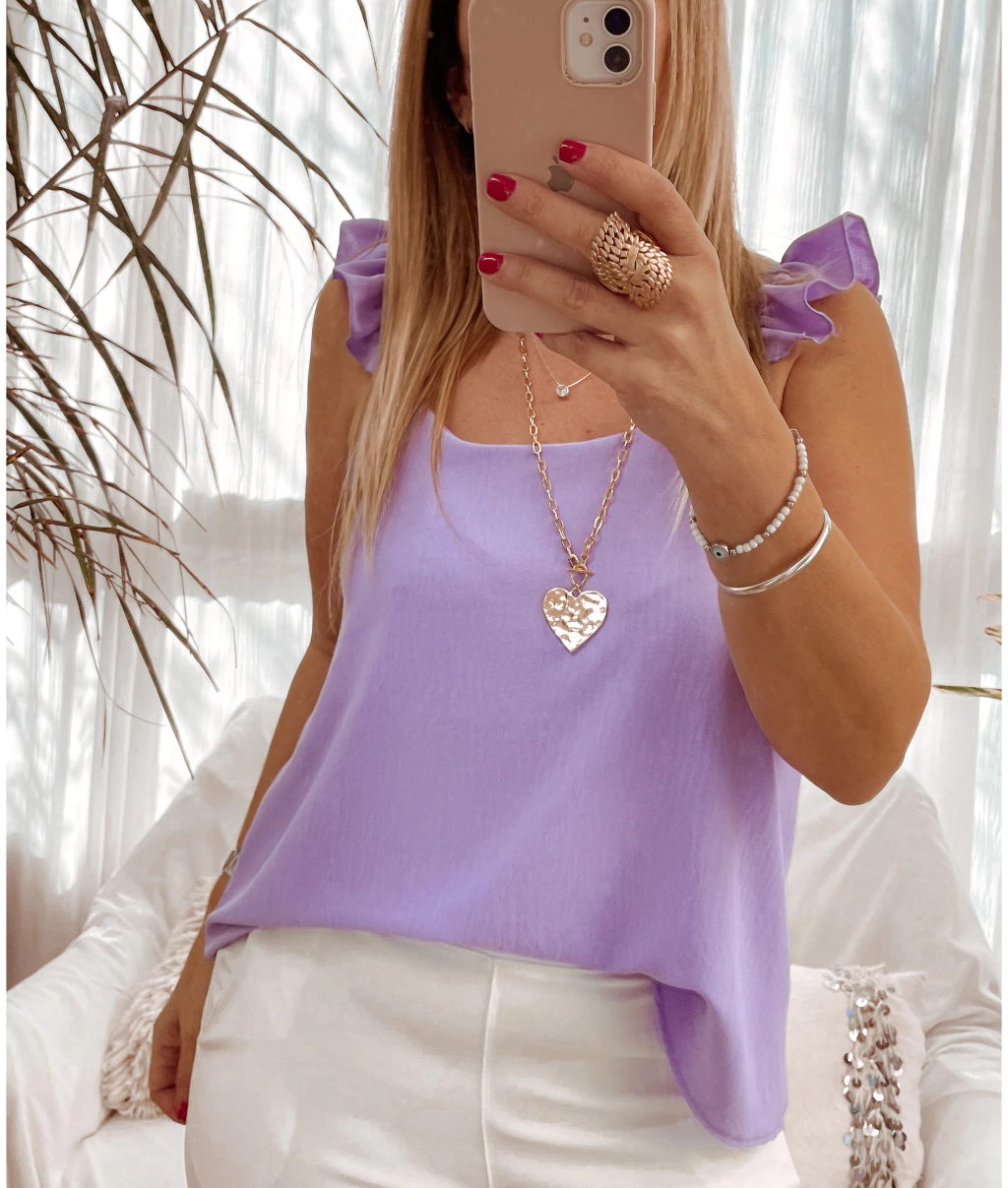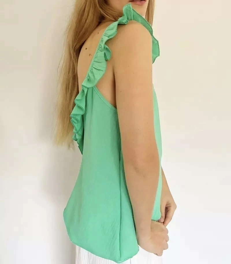 Blusa de lino de crep con escote redondo en delantera y espalda cavada . Medio forro en la zona de busto