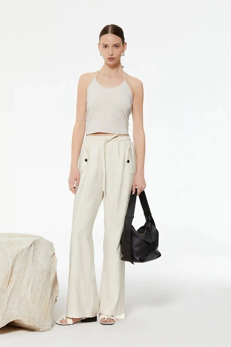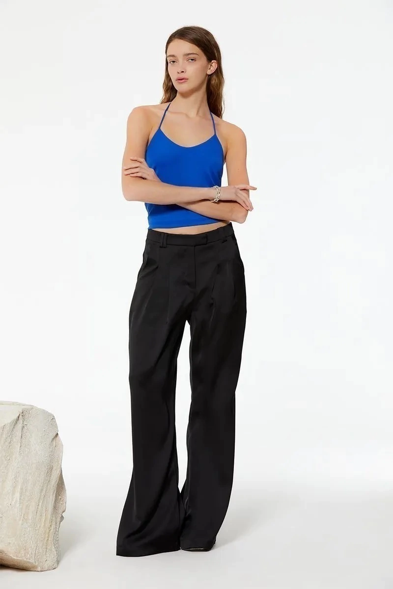 Musculosa AYRES confeccionada en microfibra alta torsionDetalle de anudado en cuelloLa modelo mide 1,74 cm y usa talle 40Composicion88%POLIESTER 12% SPANDEX