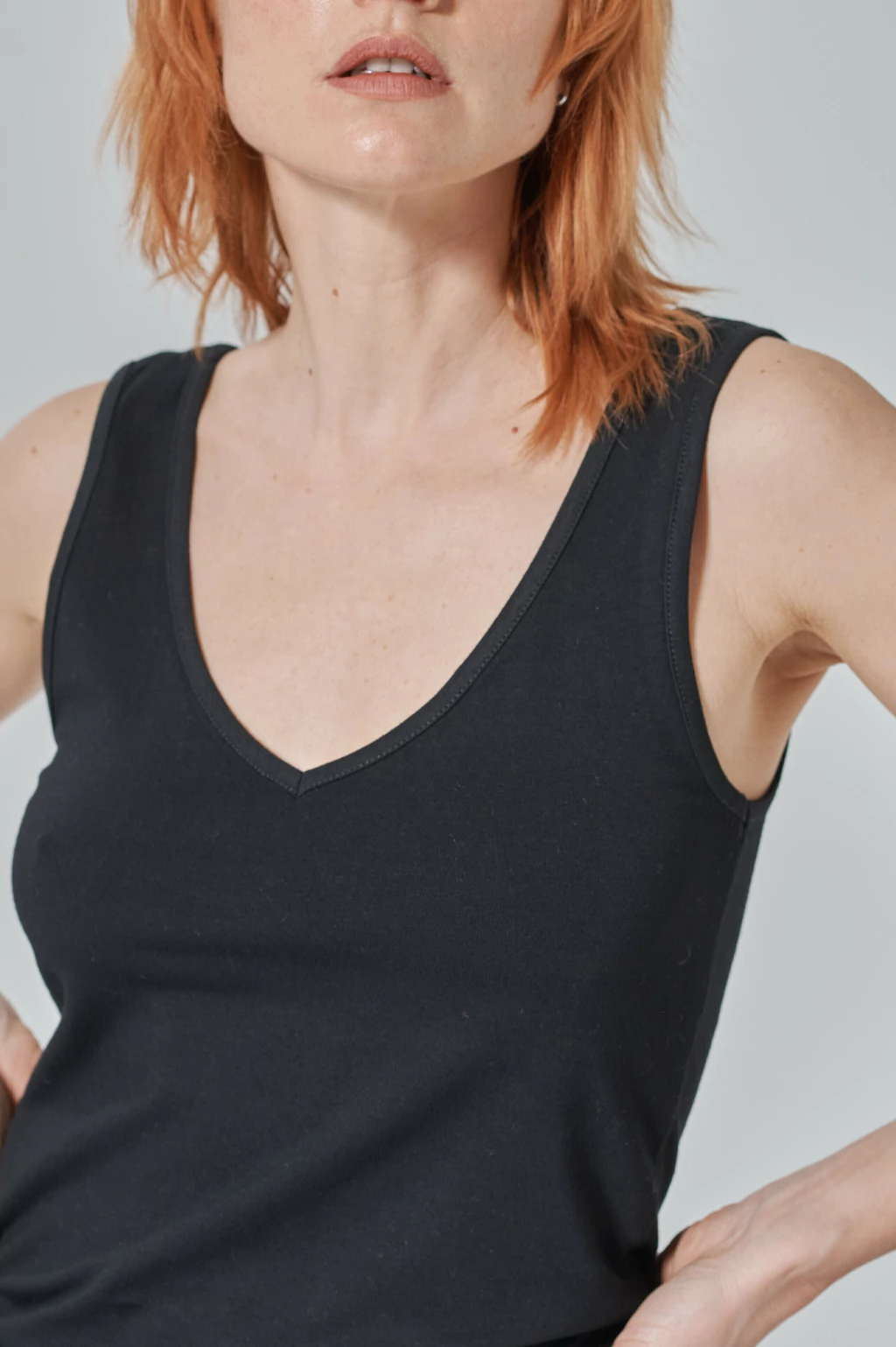 Descripción: La musculosa de algodón con lycra es la opción ideal para quienes buscan comodidad y estilo en su vestimenta diaria. Con bretel ancho y escote en V, esta prenda se adapta perfectamente a diferentes tipos de cuerpo, ofreciendo un ajuste que realza la figura.
