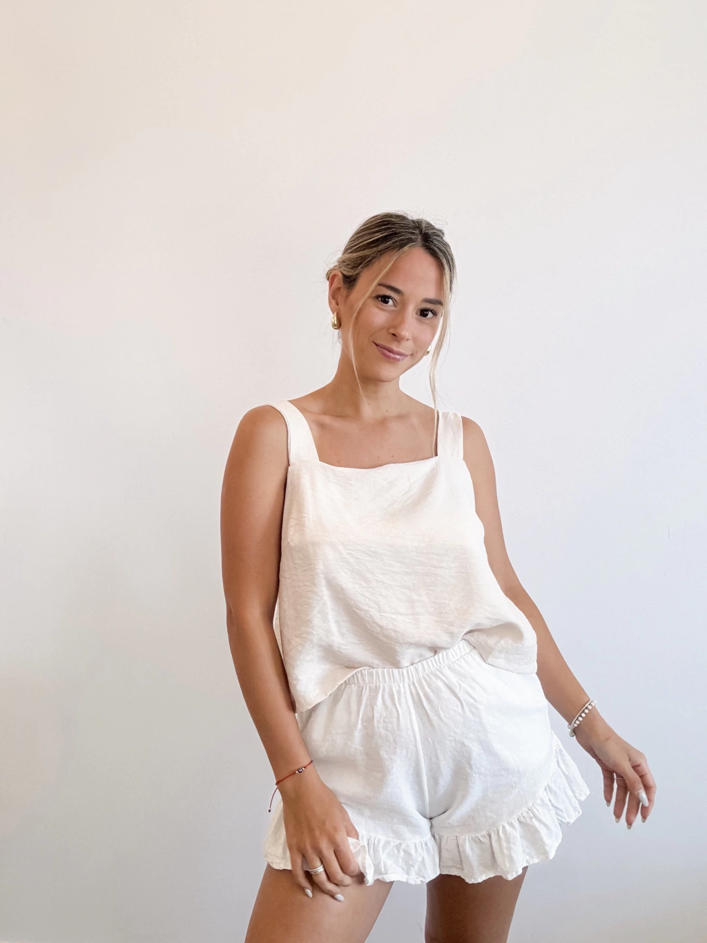 Top escote recto con boton en espalda.MEDIDASAncho de busto48 cmLargo50 cm